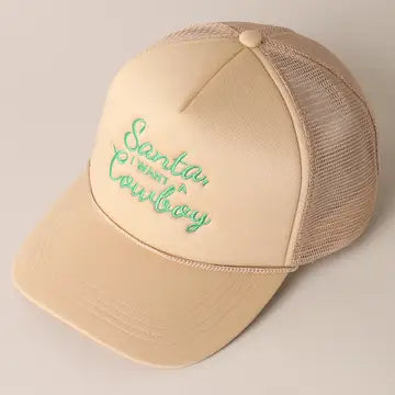 Sold out'Santa Cowboy' Trucker Hat in Taupe
