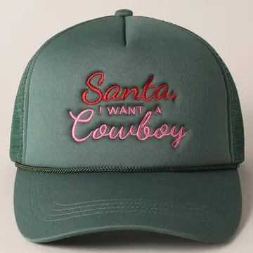 'Santa Cowboy' Trucker Hat in Hunter Green
