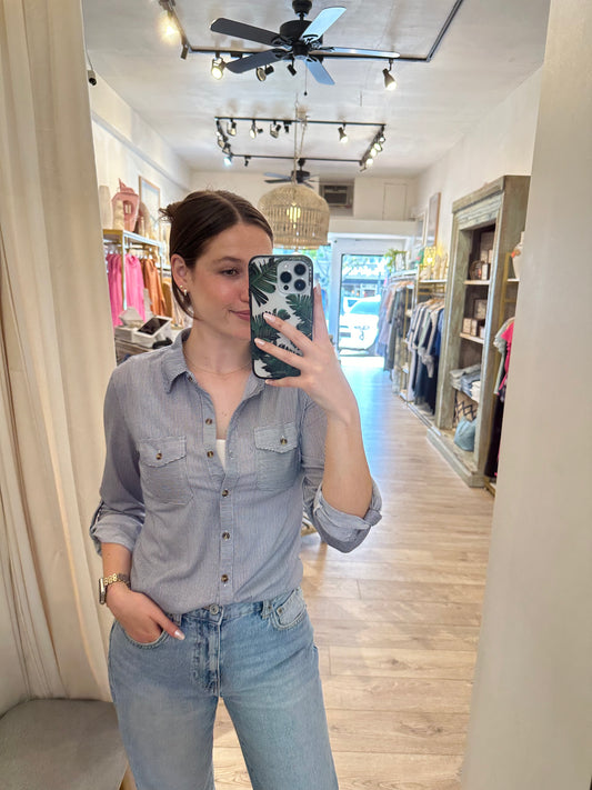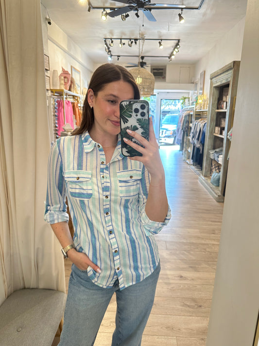 Sold outFree Bird Aqua/Blue Stripe Shirt