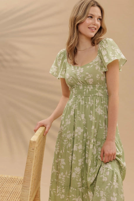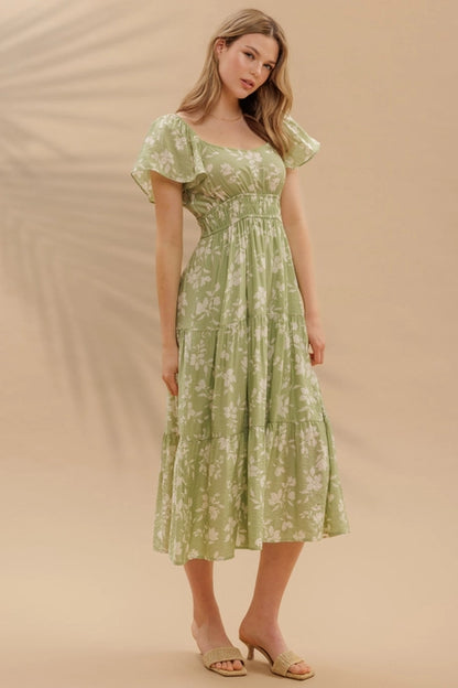 Adeline Olive Floral Midi Dress
