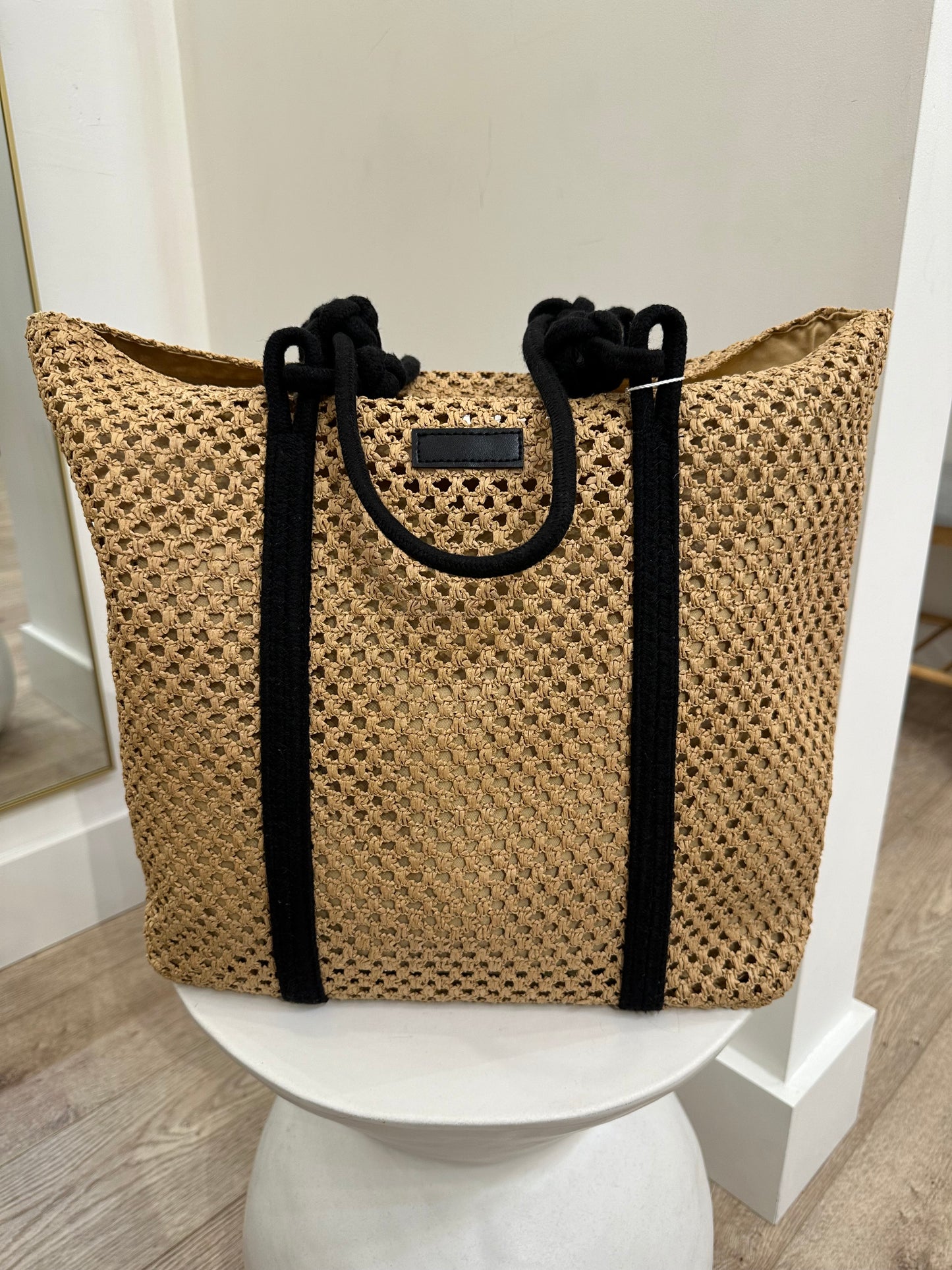 Sandy Brown Black Weave Tote
